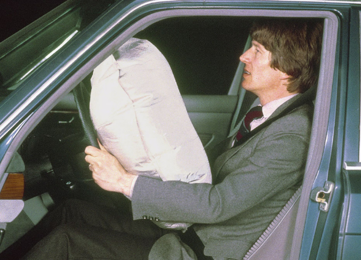 A new era of occupant protection began. First offered together in the S-Class W126, the driver airbag and seatbelt tensioner introduced a coordinated approach to passenger protection, establishing a new principle for safety in motion.
